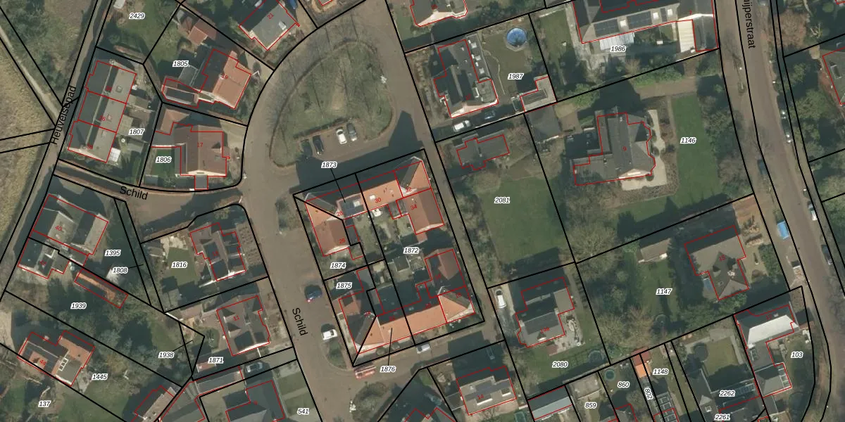 Het perceel waarop Schild 34 staat heeft een oppervlakte van 749 m². Dit is een groot perceel. De perceeloppervlakte wordt geregistreerd door het Kadaster. Gedetailleerde informatie over de maten van dit perceel kunt u vinden in het rapport Kadastrale kaart met maatvoering van Schild 34.