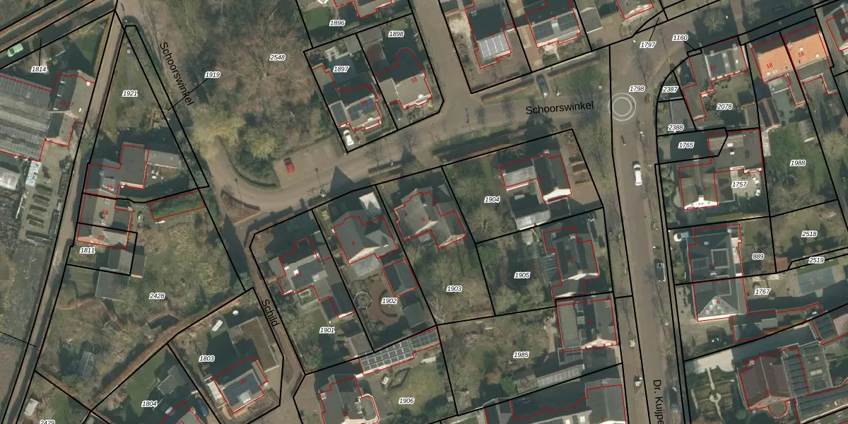 Schoorswinkel 6 is gelegen op kadastraal perceel GMT00N1903. Deze kadastrale aanduiding is uniek en wordt gebruikt door het Kadaster om eigendomsrechten en andere zakelijke rechten vast te leggen. Het perceel maakt onderdeel uit van de kadastrale gemeente Gemert.