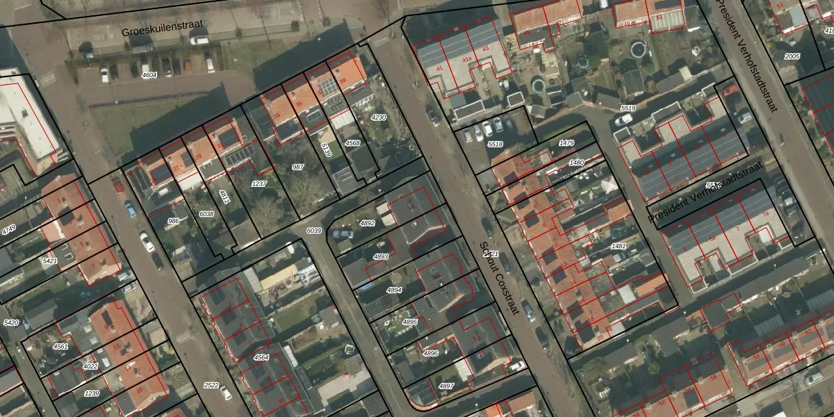 Gebruik de zoekbalk of klik op een perceel voor informatie over de adressen binnen dit perceel.