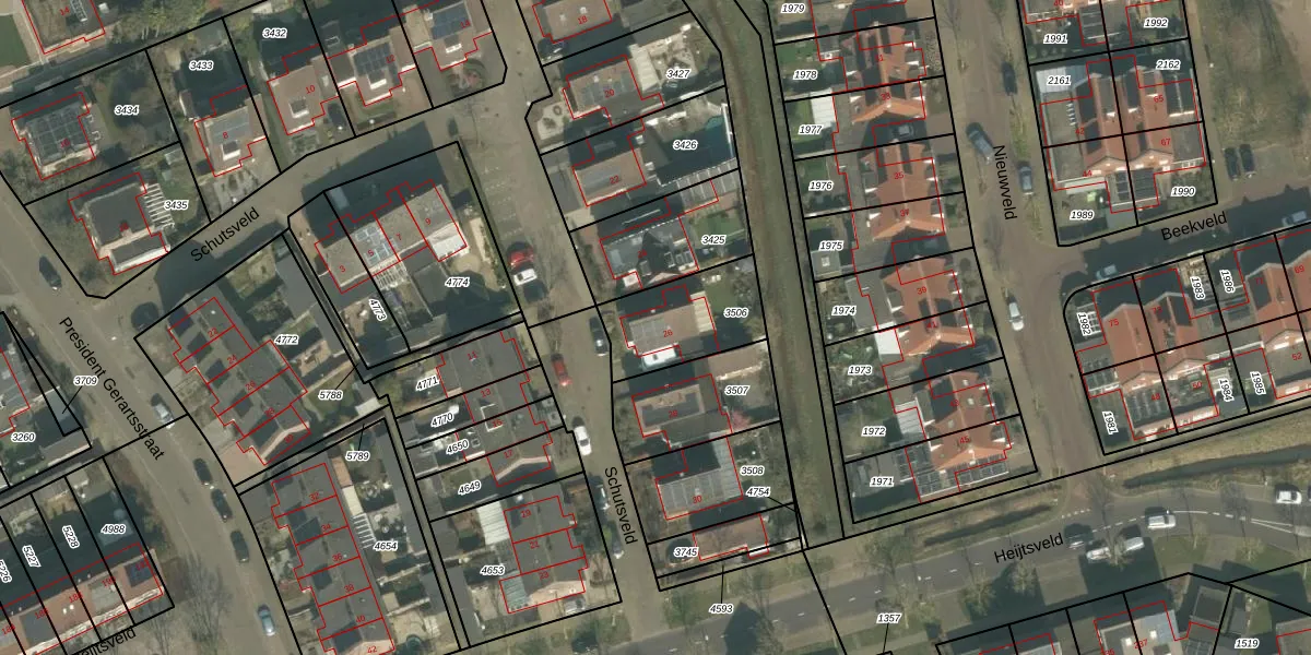 Gebruik de zoekbalk of klik op een perceel voor informatie over de adressen binnen dit perceel.
