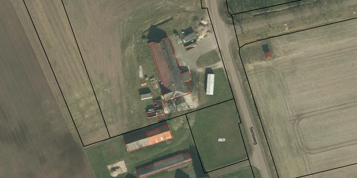 Het perceel waarop Serisweg 24 staat heeft een oppervlakte van 2,1 ha. Dit is een zeer groot perceel. De perceeloppervlakte wordt geregistreerd door het Kadaster. Gedetailleerde informatie over de maten van dit perceel kunt u vinden in het rapport Kadastrale kaart met maatvoering van Serisweg 24.