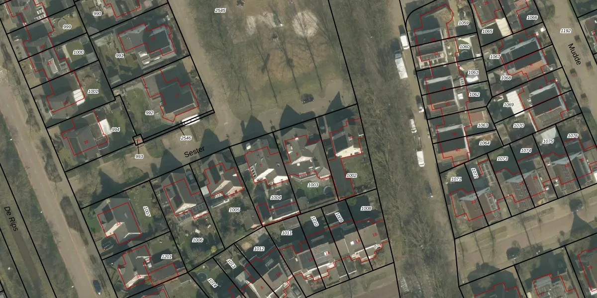 Sester 9 is gelegen op kadastraal perceel GMT00O1003. Deze kadastrale aanduiding is uniek en wordt gebruikt door het Kadaster om eigendomsrechten en andere zakelijke rechten vast te leggen. Het perceel maakt onderdeel uit van de kadastrale gemeente Gemert.