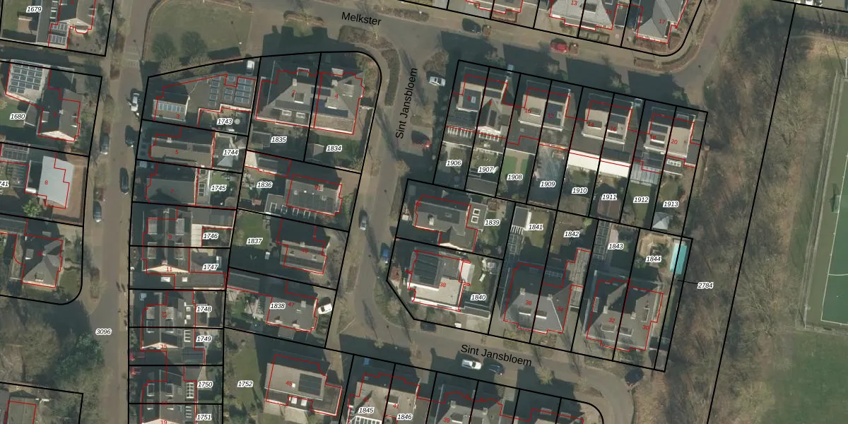 Gebruik de zoekbalk of klik op een perceel voor informatie over de adressen binnen dit perceel.