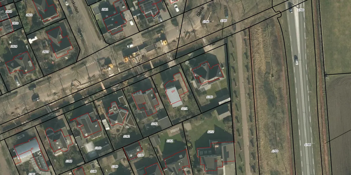 Slenk 107 is gelegen op kadastraal perceel GMT00O1271. Deze kadastrale aanduiding is uniek en wordt gebruikt door het Kadaster om eigendomsrechten en andere zakelijke rechten vast te leggen. Het perceel maakt onderdeel uit van de kadastrale gemeente Gemert.