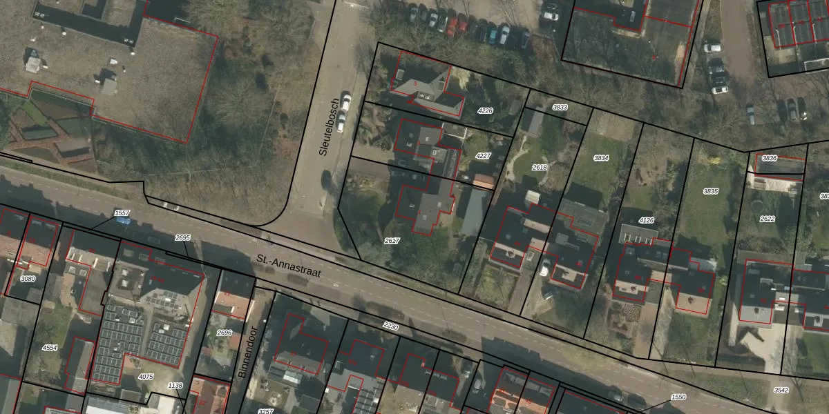 Het perceel waarop Sleutelbosch 1 staat heeft een oppervlakte van 812 m². Dit is een groot perceel. De perceeloppervlakte wordt geregistreerd door het Kadaster. Gedetailleerde informatie over de maten van dit perceel kunt u vinden in het rapport Kadastrale kaart met maatvoering van Sleutelbosch 1.