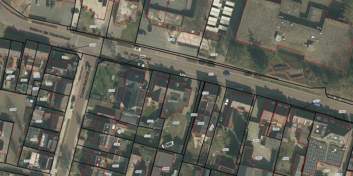 Het perceel waarop St.-Annastraat 3 staat heeft een oppervlakte van 708 m². Dit is een groot perceel. De perceeloppervlakte wordt geregistreerd door het Kadaster. Gedetailleerde informatie over de maten van dit perceel kunt u vinden in het rapport Kadastrale kaart met maatvoering van St.-Annastraat 3.