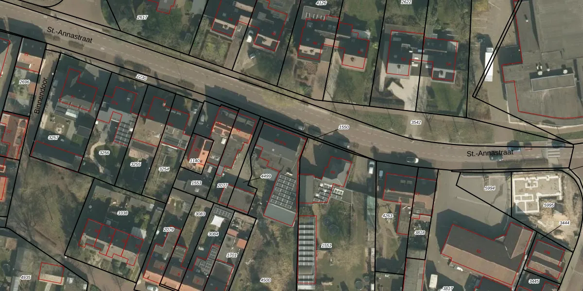 Het perceel waarop St.-Annastraat 47-a staat heeft een oppervlakte van 1196 m². Dit is een zeer groot perceel. De perceeloppervlakte wordt geregistreerd door het Kadaster. Gedetailleerde informatie over de maten van dit perceel kunt u vinden in het rapport Kadastrale kaart met maatvoering van St.-Annastraat 47-a.