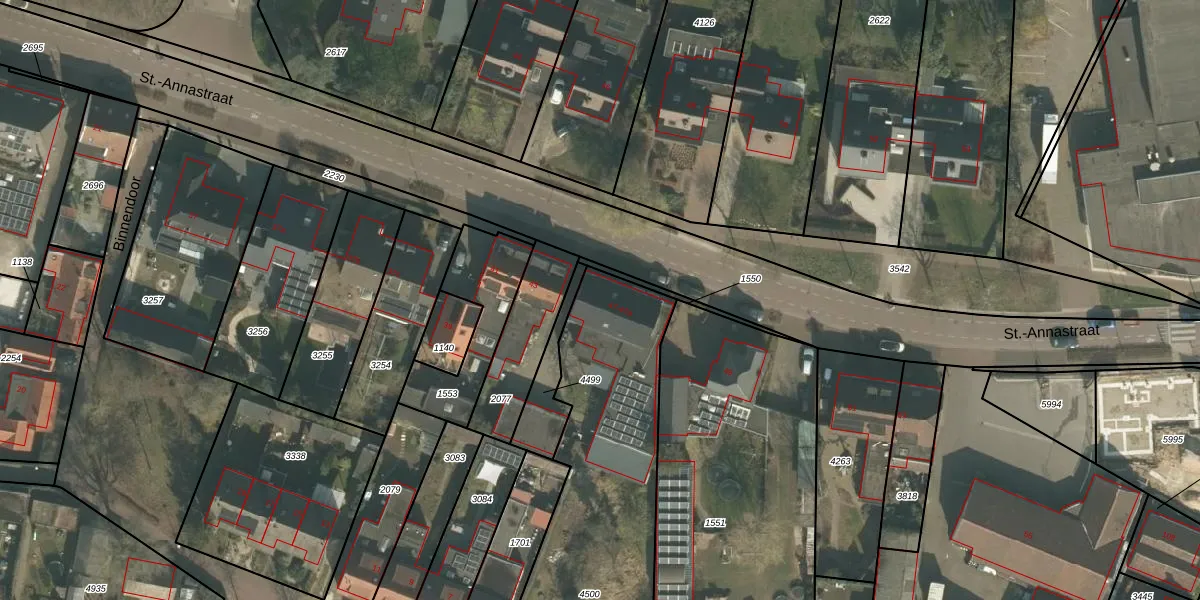 Het perceel waarop St.-Annastraat 47 staat heeft een oppervlakte van 1196 m². Dit is een zeer groot perceel. De perceeloppervlakte wordt geregistreerd door het Kadaster. Gedetailleerde informatie over de maten van dit perceel kunt u vinden in het rapport Kadastrale kaart met maatvoering van St.-Annastraat 47.