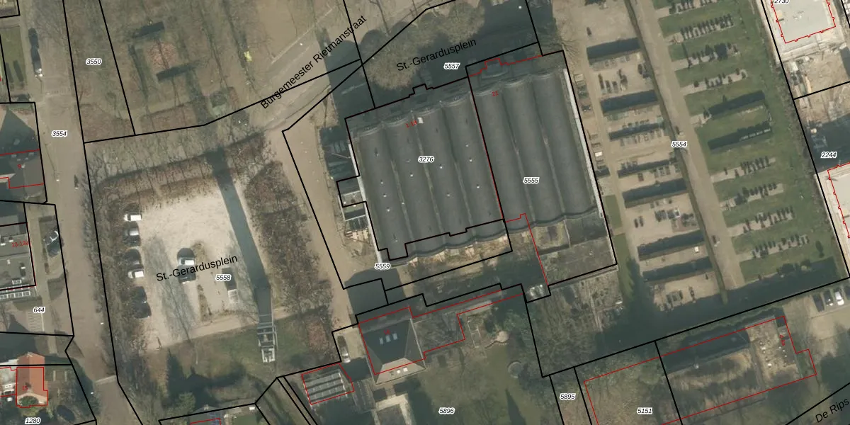 Het perceel waarop St.-Gerardusplein 31 staat heeft een oppervlakte van 1064 m². Dit is een zeer groot perceel. De perceeloppervlakte wordt geregistreerd door het Kadaster. Gedetailleerde informatie over de maten van dit perceel kunt u vinden in het rapport Kadastrale kaart met maatvoering van St.-Gerardusplein 31.
