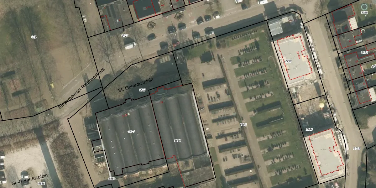 St.-Gerardusplein 59 is gelegen op kadastraal perceel GMT00M5555. Deze kadastrale aanduiding is uniek en wordt gebruikt door het Kadaster om eigendomsrechten en andere zakelijke rechten vast te leggen. Het perceel maakt onderdeel uit van de kadastrale gemeente Gemert.