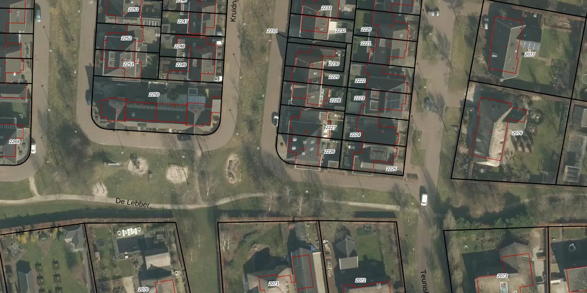 Het perceel waarop Teunisbloem 10 staat heeft een oppervlakte van 214 m². Dit is een middelgroot perceel. De perceeloppervlakte wordt geregistreerd door het Kadaster. Gedetailleerde informatie over de maten van dit perceel kunt u vinden in het rapport Kadastrale kaart met maatvoering van Teunisbloem 10.