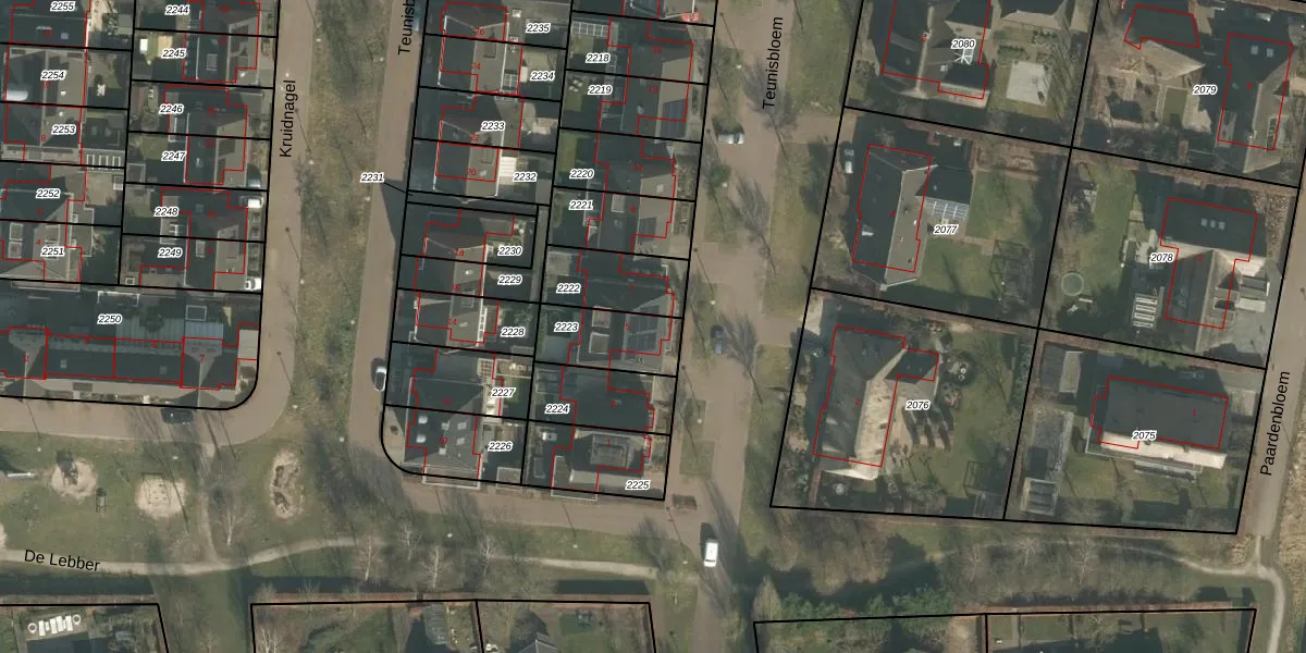 Het perceel waarop Teunisbloem 5 staat heeft een oppervlakte van 198 m². Dit is een middelgroot perceel. De perceeloppervlakte wordt geregistreerd door het Kadaster. Gedetailleerde informatie over de maten van dit perceel kunt u vinden in het rapport Kadastrale kaart met maatvoering van Teunisbloem 5.
