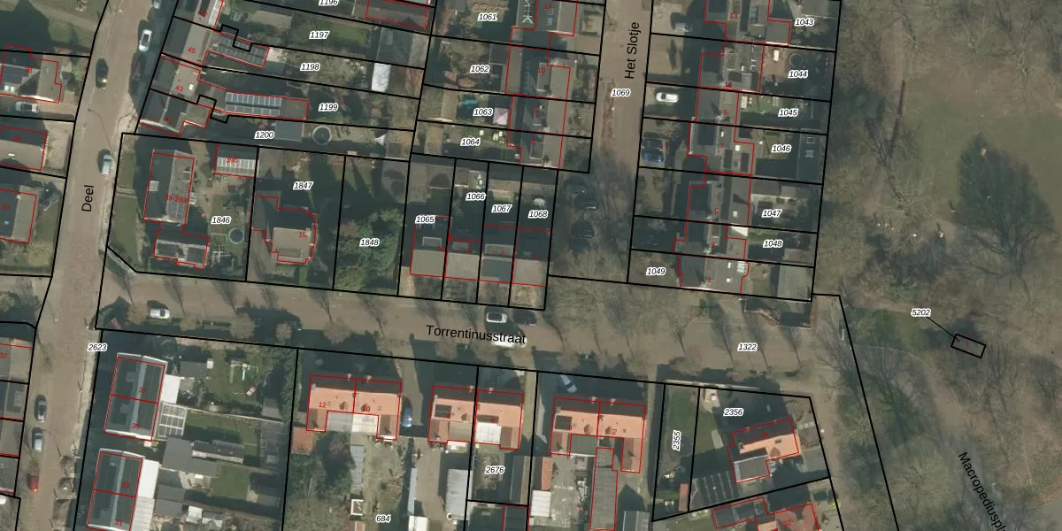 Het perceel waarop Torrentinusstraat 5 staat heeft een oppervlakte van 173 m². Dit is een middelgroot perceel. De perceeloppervlakte wordt geregistreerd door het Kadaster. Gedetailleerde informatie over de maten van dit perceel kunt u vinden in het rapport Kadastrale kaart met maatvoering van Torrentinusstraat 5.