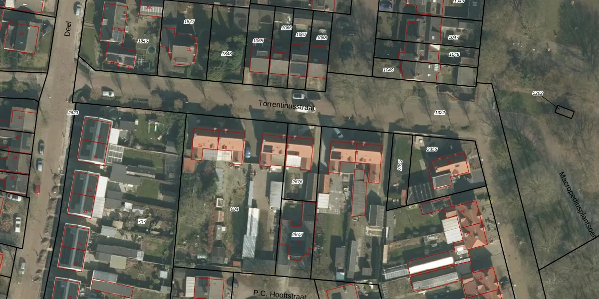 Torrentinusstraat 6 is gelegen op kadastraal perceel GMT00N2676. Deze kadastrale aanduiding is uniek en wordt gebruikt door het Kadaster om eigendomsrechten en andere zakelijke rechten vast te leggen. Het perceel maakt onderdeel uit van de kadastrale gemeente Gemert.