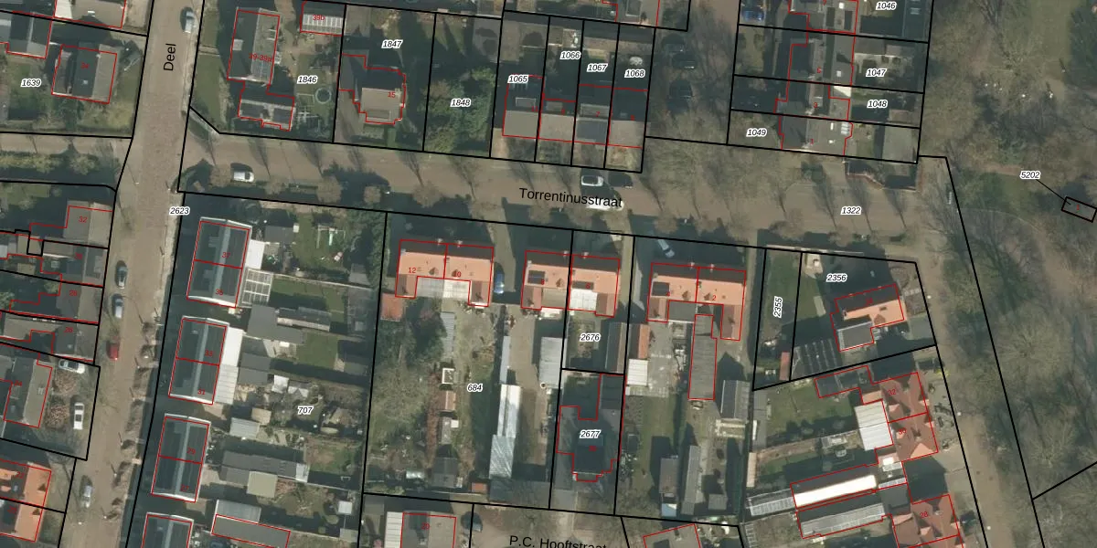 Het perceel waarop Torrentinusstraat 8 staat heeft een oppervlakte van 1795 m². Dit is een zeer groot perceel. De perceeloppervlakte wordt geregistreerd door het Kadaster. Gedetailleerde informatie over de maten van dit perceel kunt u vinden in het rapport Kadastrale kaart met maatvoering van Torrentinusstraat 8.