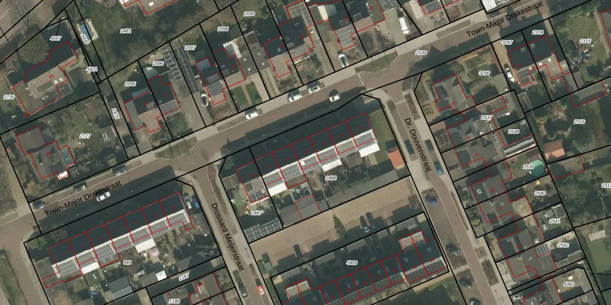 Het perceel waarop Town-Major Drakestraat 21 staat heeft een oppervlakte van 1313 m². Dit is een zeer groot perceel. De perceeloppervlakte wordt geregistreerd door het Kadaster. Gedetailleerde informatie over de maten van dit perceel kunt u vinden in het rapport Kadastrale kaart met maatvoering van Town-Major Drakestraat 21.