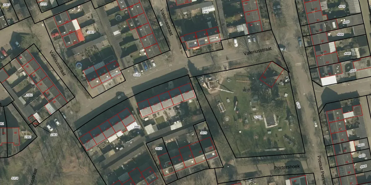 Het perceel waarop Valeriusstraat 119 staat heeft een oppervlakte van 2924 m². Dit is een zeer groot perceel. De perceeloppervlakte wordt geregistreerd door het Kadaster. Gedetailleerde informatie over de maten van dit perceel kunt u vinden in het rapport Kadastrale kaart met maatvoering van Valeriusstraat 119.