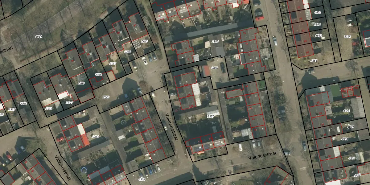 Het perceel waarop Valeriusstraat 126 staat heeft een oppervlakte van 1965 m². Dit is een zeer groot perceel. De perceeloppervlakte wordt geregistreerd door het Kadaster. Gedetailleerde informatie over de maten van dit perceel kunt u vinden in het rapport Kadastrale kaart met maatvoering van Valeriusstraat 126.