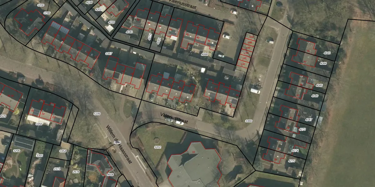 Het perceel waarop Valeriusstraat 30 staat heeft een oppervlakte van 2344 m². Dit is een zeer groot perceel. De perceeloppervlakte wordt geregistreerd door het Kadaster. Gedetailleerde informatie over de maten van dit perceel kunt u vinden in het rapport Kadastrale kaart met maatvoering van Valeriusstraat 30.