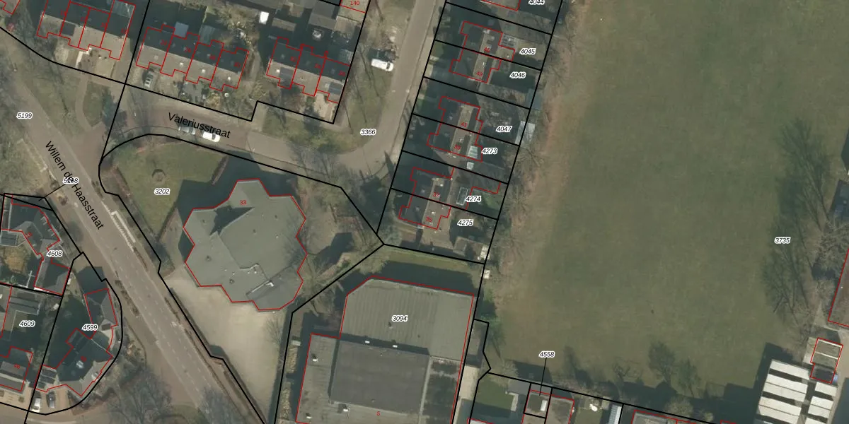 Gebruik de zoekbalk of klik op een perceel voor informatie over de adressen binnen dit perceel.