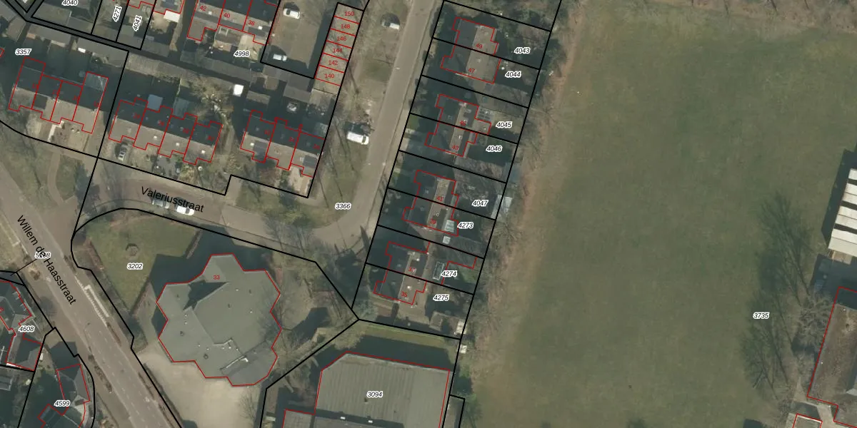 Het perceel waarop Valeriusstraat 39 staat heeft een oppervlakte van 244 m². Dit is een middelgroot perceel. De perceeloppervlakte wordt geregistreerd door het Kadaster. Gedetailleerde informatie over de maten van dit perceel kunt u vinden in het rapport Kadastrale kaart met maatvoering van Valeriusstraat 39.