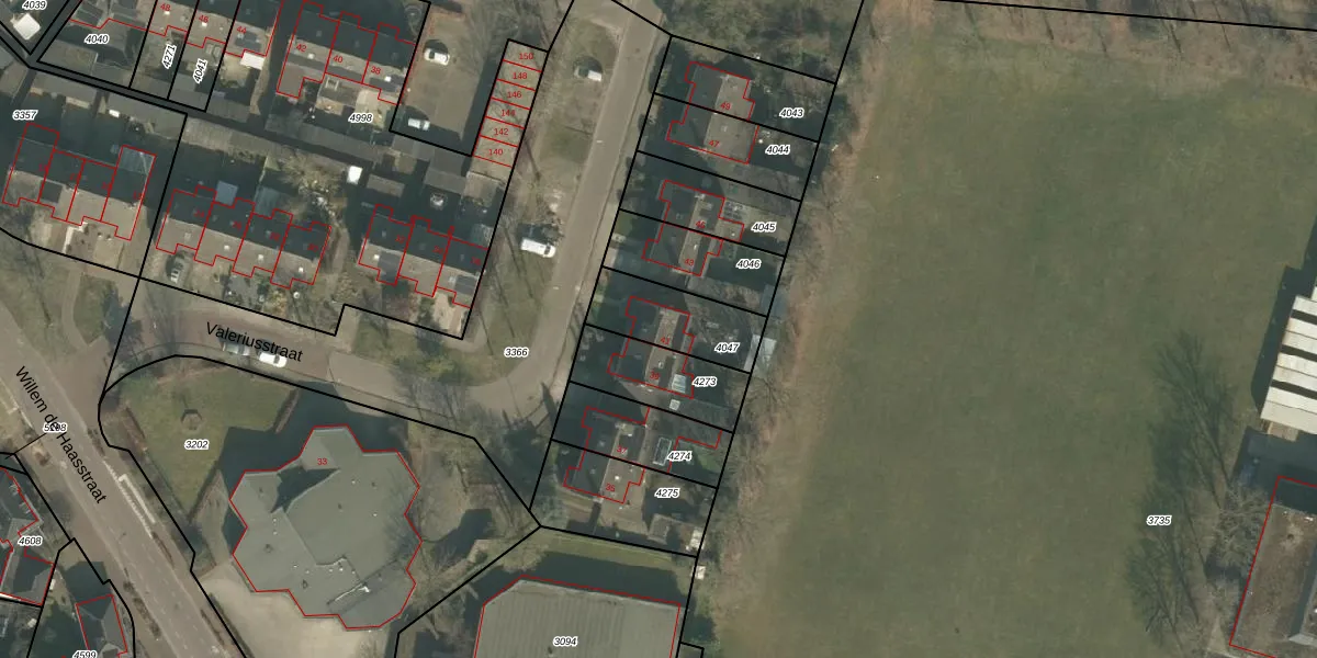 Valeriusstraat 41 is gelegen op kadastraal perceel GMT00M4047. Deze kadastrale aanduiding is uniek en wordt gebruikt door het Kadaster om eigendomsrechten en andere zakelijke rechten vast te leggen. Het perceel maakt onderdeel uit van de kadastrale gemeente Gemert.