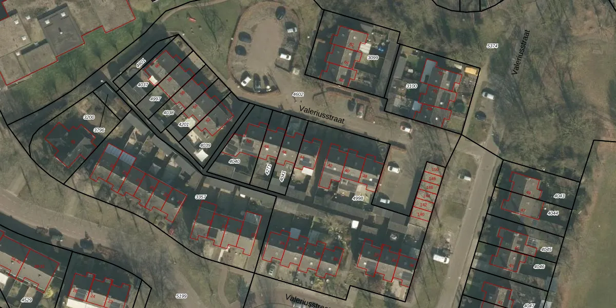 Valeriusstraat 44 is gelegen op kadastraal perceel GMT00M4998. Deze kadastrale aanduiding is uniek en wordt gebruikt door het Kadaster om eigendomsrechten en andere zakelijke rechten vast te leggen. Het perceel maakt onderdeel uit van de kadastrale gemeente Gemert.