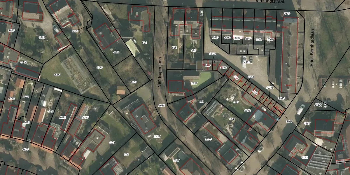 Het perceel waarop Van Eupenlaan 7 staat heeft een oppervlakte van 418 m². Dit is een groot perceel. De perceeloppervlakte wordt geregistreerd door het Kadaster. Gedetailleerde informatie over de maten van dit perceel kunt u vinden in het rapport Kadastrale kaart met maatvoering van Van Eupenlaan 7.