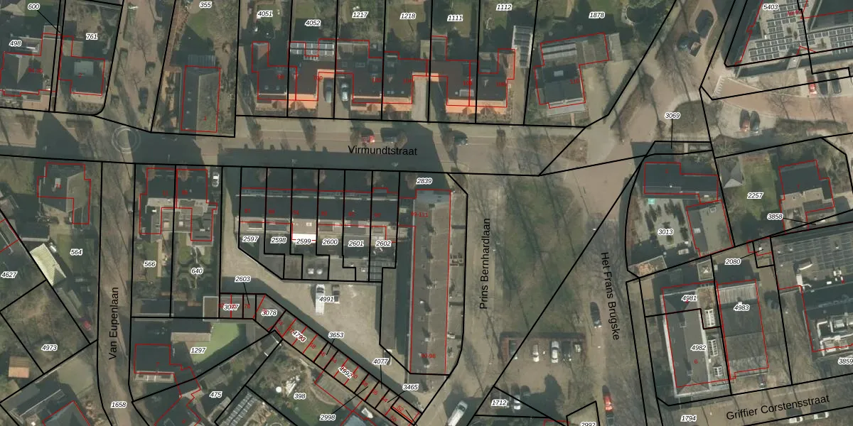 Virmundtstraat 111 is gelegen op kadastraal perceel GMT00M2839. Deze kadastrale aanduiding is uniek en wordt gebruikt door het Kadaster om eigendomsrechten en andere zakelijke rechten vast te leggen. Het perceel maakt onderdeel uit van de kadastrale gemeente Gemert.