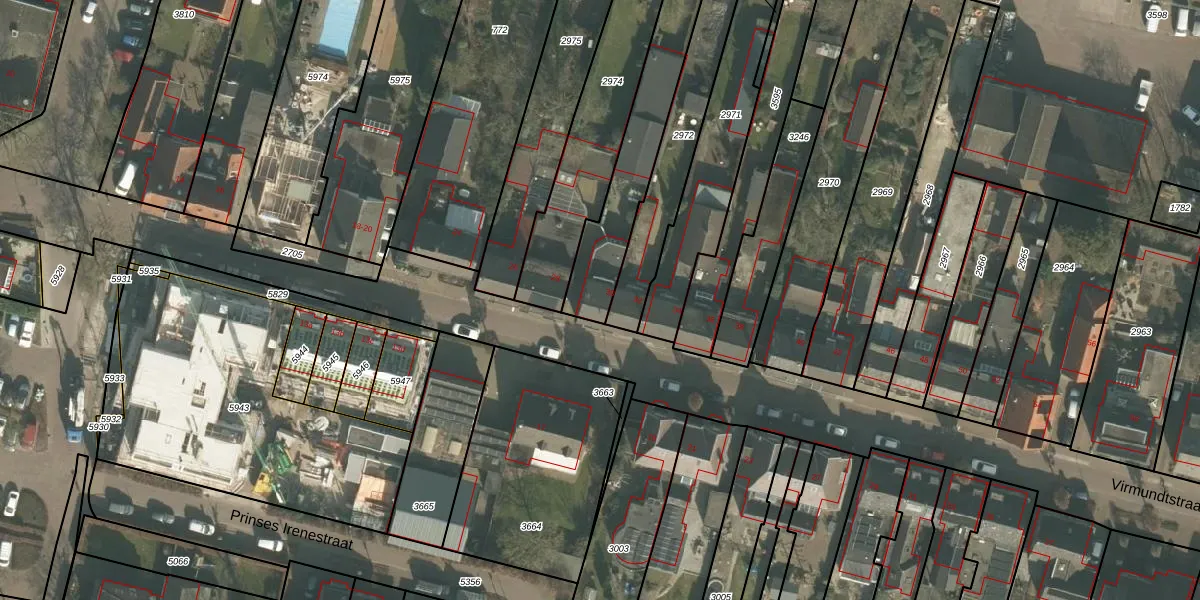 Het perceel waarop Virmundtstraat 30 staat heeft een oppervlakte van 447 m². Dit is een groot perceel. De perceeloppervlakte wordt geregistreerd door het Kadaster. Gedetailleerde informatie over de maten van dit perceel kunt u vinden in het rapport Kadastrale kaart met maatvoering van Virmundtstraat 30.