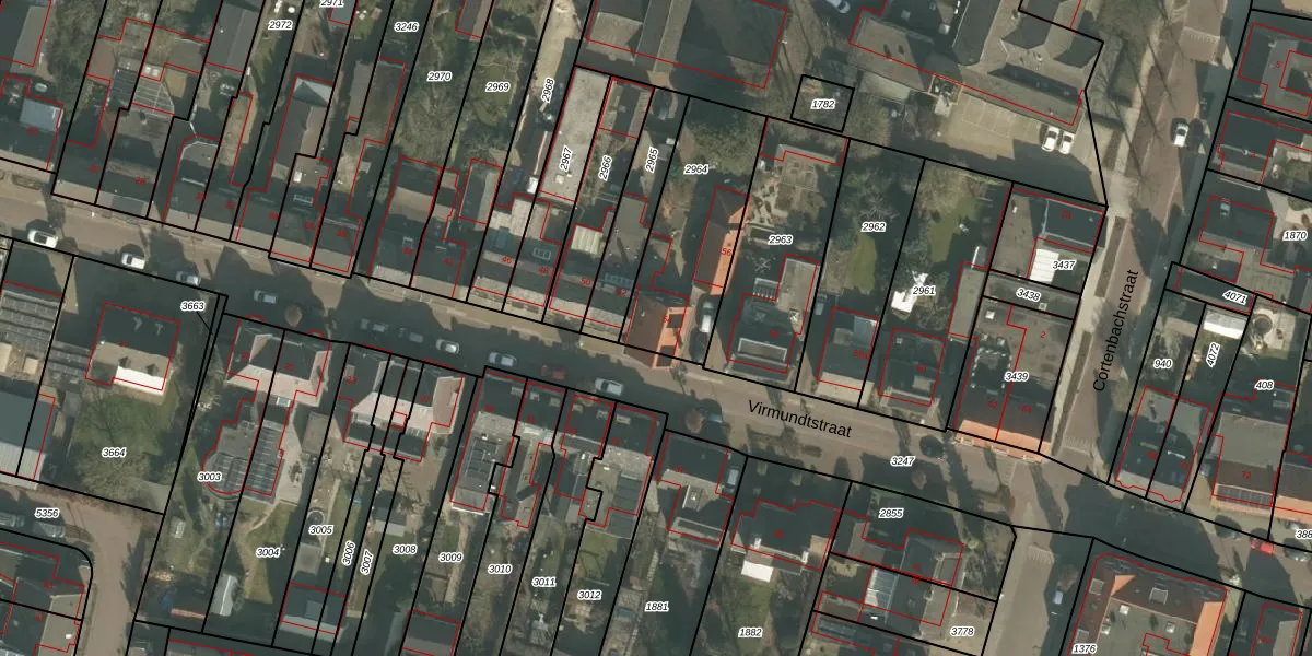 Het perceel waarop Virmundtstraat 54 staat heeft een oppervlakte van 505 m². Dit is een groot perceel. De perceeloppervlakte wordt geregistreerd door het Kadaster. Gedetailleerde informatie over de maten van dit perceel kunt u vinden in het rapport Kadastrale kaart met maatvoering van Virmundtstraat 54.