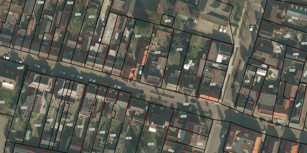 Het perceel waarop Virmundtstraat 58 staat heeft een oppervlakte van 539 m². Dit is een groot perceel. De perceeloppervlakte wordt geregistreerd door het Kadaster. Gedetailleerde informatie over de maten van dit perceel kunt u vinden in het rapport Kadastrale kaart met maatvoering van Virmundtstraat 58.