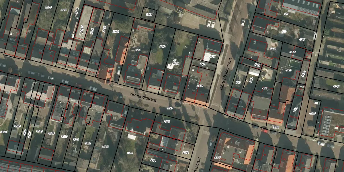 Gebruik de zoekbalk of klik op een perceel voor informatie over de adressen binnen dit perceel.