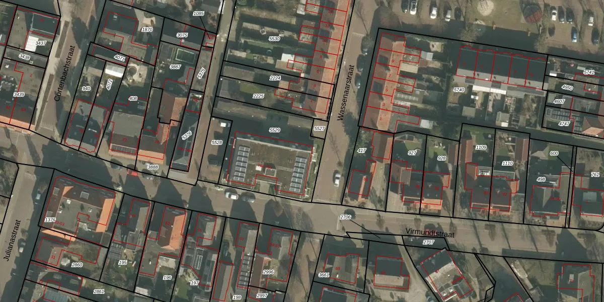 Het perceel waarop Virmundtstraat 78-d staat heeft een oppervlakte van 900 m². Dit is een groot perceel. De perceeloppervlakte wordt geregistreerd door het Kadaster. Gedetailleerde informatie over de maten van dit perceel kunt u vinden in het rapport Kadastrale kaart met maatvoering van Virmundtstraat 78-d.