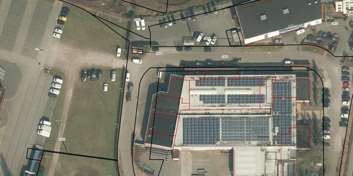 Vliet 9-b is gelegen op kadastraal perceel GMT00D1433. Deze kadastrale aanduiding is uniek en wordt gebruikt door het Kadaster om eigendomsrechten en andere zakelijke rechten vast te leggen. Het perceel maakt onderdeel uit van de kadastrale gemeente Gemert.