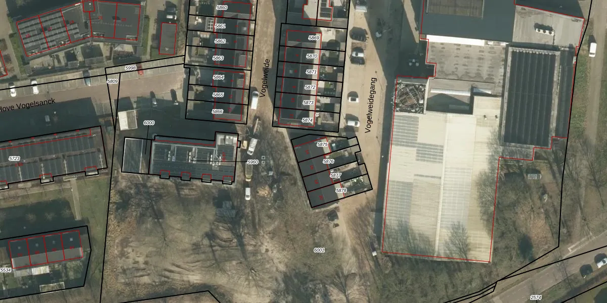 Gebruik de zoekbalk of klik op een perceel voor informatie over de adressen binnen dit perceel.