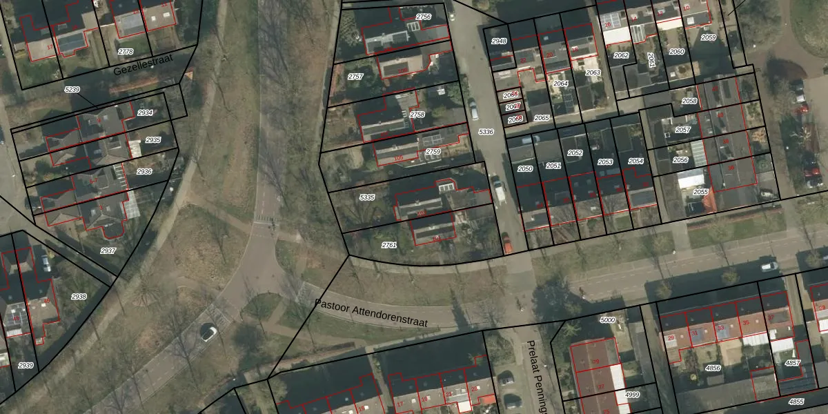 Gebruik de zoekbalk of klik op een perceel voor informatie over de adressen binnen dit perceel.