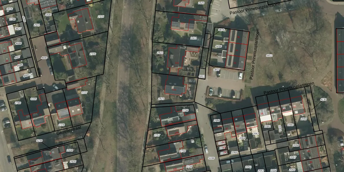 Gebruik de zoekbalk of klik op een perceel voor informatie over de adressen binnen dit perceel.
