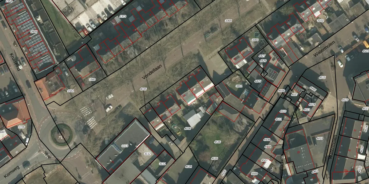 Vondellaan 19 is gelegen op kadastraal perceel GMT00M4036. Deze kadastrale aanduiding is uniek en wordt gebruikt door het Kadaster om eigendomsrechten en andere zakelijke rechten vast te leggen. Het perceel maakt onderdeel uit van de kadastrale gemeente Gemert.
