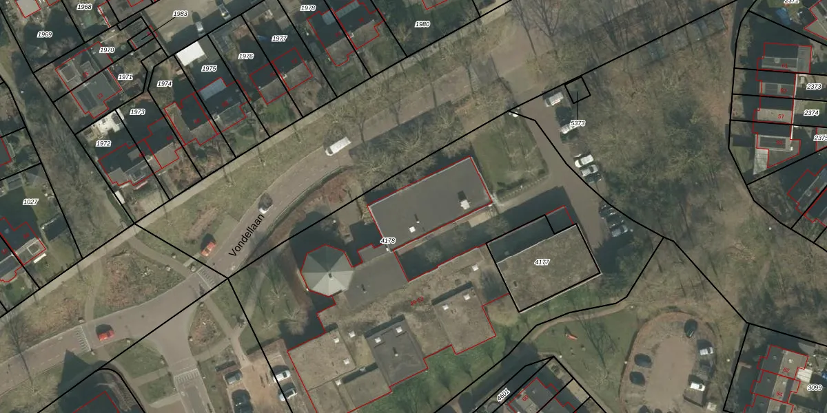 Het perceel waarop Vondellaan 51 staat heeft een oppervlakte van 4319 m². Dit is een zeer groot perceel. De perceeloppervlakte wordt geregistreerd door het Kadaster. Gedetailleerde informatie over de maten van dit perceel kunt u vinden in het rapport Kadastrale kaart met maatvoering van Vondellaan 51.