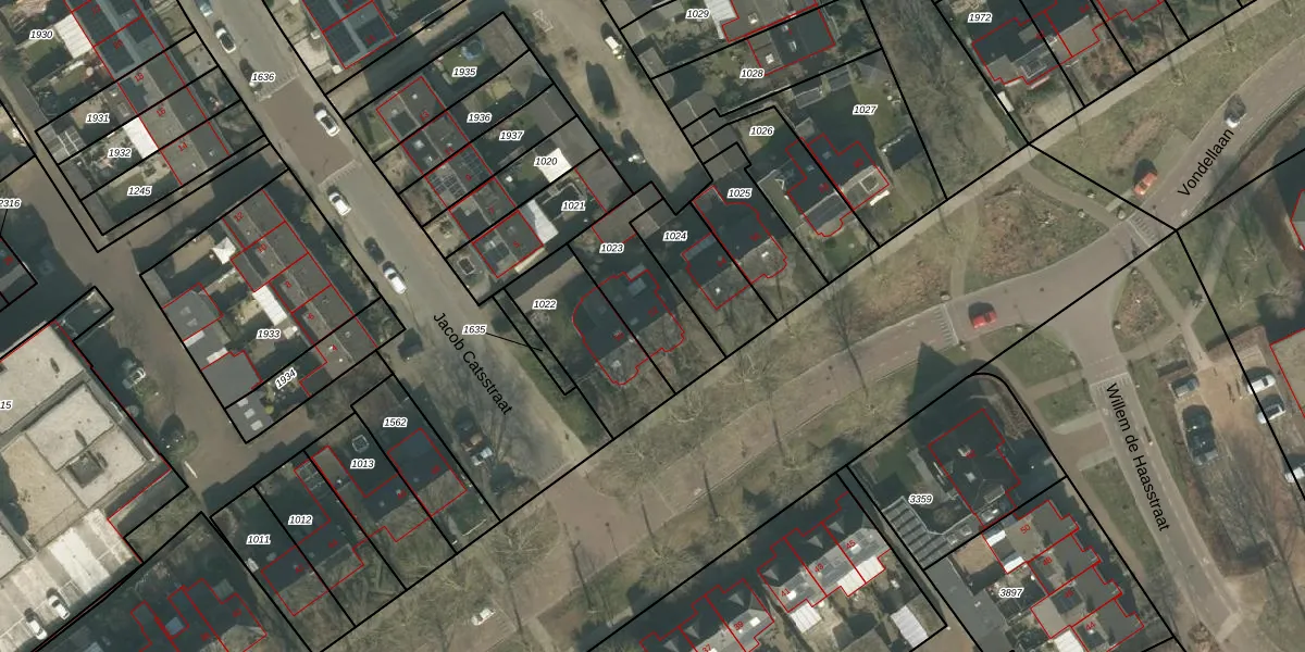 Het perceel waarop Vondellaan 52 staat heeft een oppervlakte van 296 m². Dit is een middelgroot perceel. De perceeloppervlakte wordt geregistreerd door het Kadaster. Gedetailleerde informatie over de maten van dit perceel kunt u vinden in het rapport Kadastrale kaart met maatvoering van Vondellaan 52.