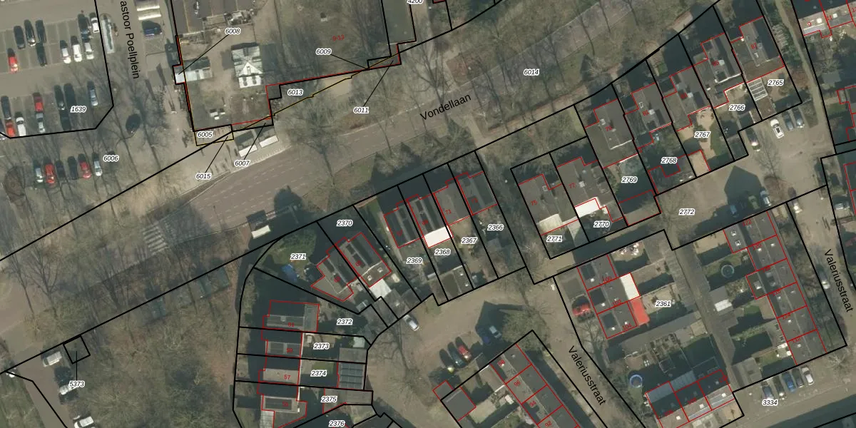Gebruik de zoekbalk of klik op een perceel voor informatie over de adressen binnen dit perceel.