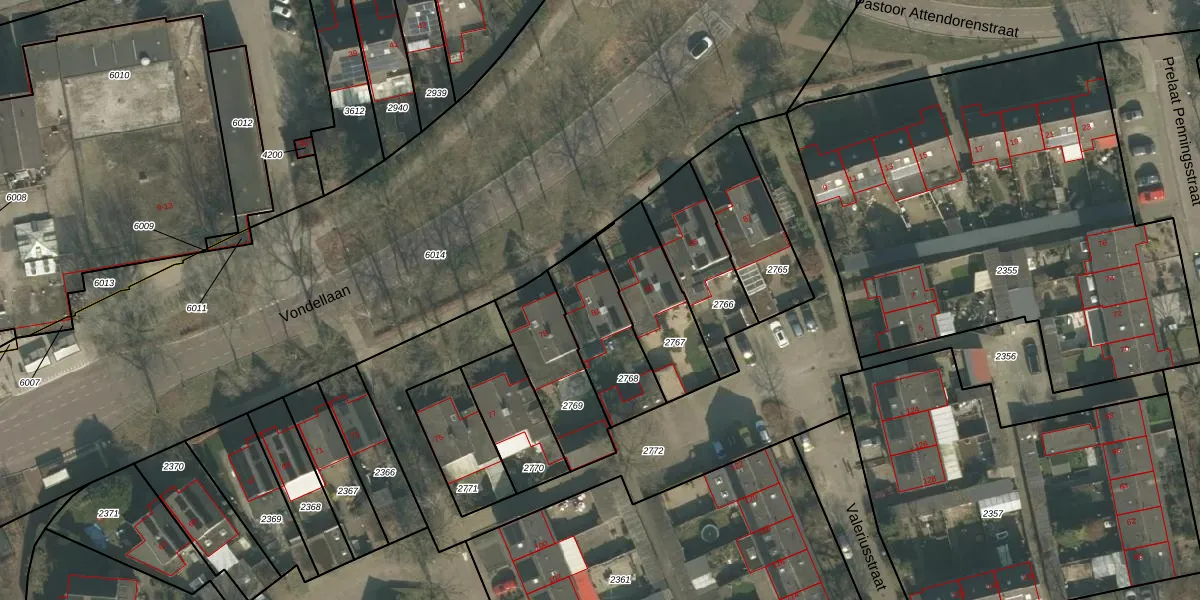 Gebruik de zoekbalk of klik op een perceel voor informatie over de adressen binnen dit perceel.