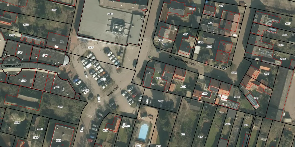 Het perceel waarop Vroonhof 8 staat heeft een oppervlakte van 364 m². Dit is een groot perceel. De perceeloppervlakte wordt geregistreerd door het Kadaster. Gedetailleerde informatie over de maten van dit perceel kunt u vinden in het rapport Kadastrale kaart met maatvoering van Vroonhof 8.