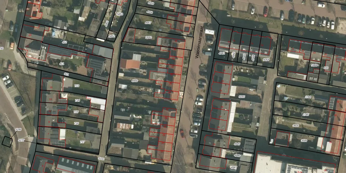 Wassenaarstraat 38 is gelegen op kadastraal perceel GMT00M4956. Deze kadastrale aanduiding is uniek en wordt gebruikt door het Kadaster om eigendomsrechten en andere zakelijke rechten vast te leggen. Het perceel maakt onderdeel uit van de kadastrale gemeente Gemert.