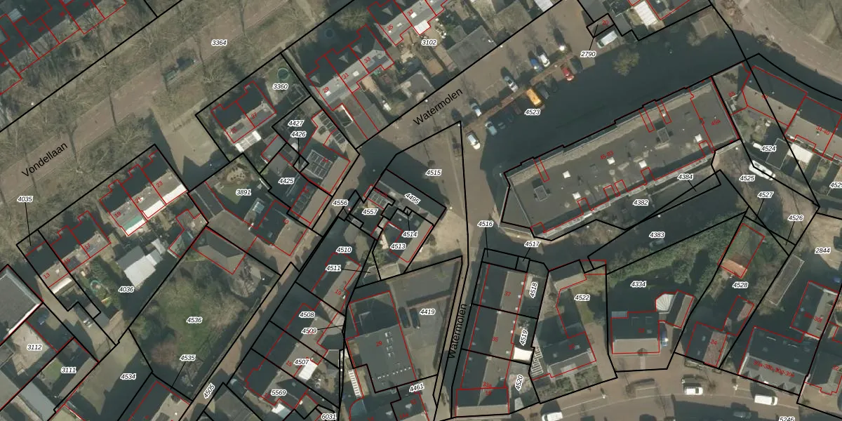 Het perceel waarop Watermolen 23 staat heeft een oppervlakte van 98 m². Dit is een klein perceel. De perceeloppervlakte wordt geregistreerd door het Kadaster. Gedetailleerde informatie over de maten van dit perceel kunt u vinden in het rapport Kadastrale kaart met maatvoering van Watermolen 23.