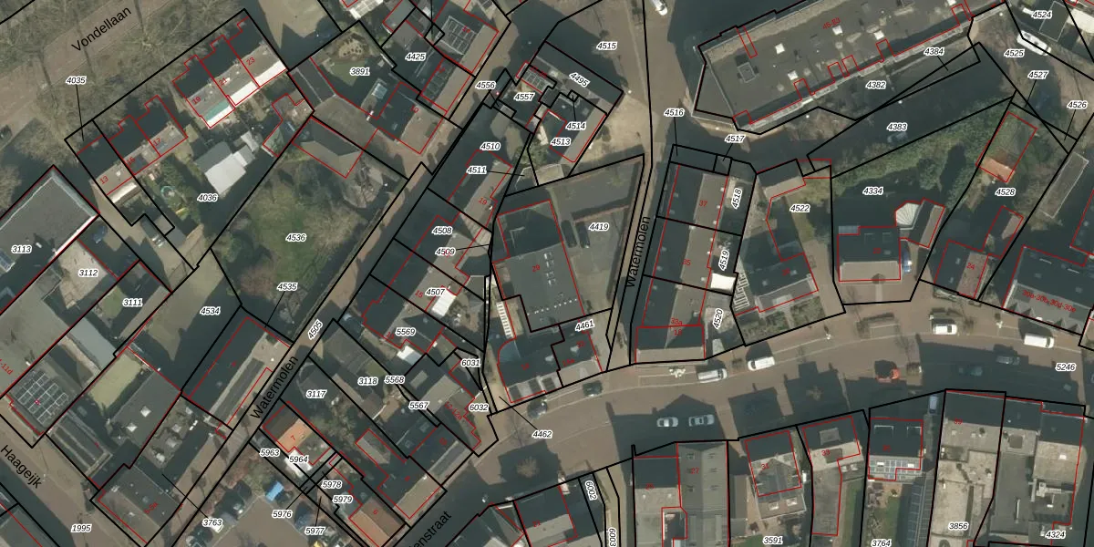Het perceel waarop Watermolen 29 staat heeft een oppervlakte van 601 m². Dit is een groot perceel. De perceeloppervlakte wordt geregistreerd door het Kadaster. Gedetailleerde informatie over de maten van dit perceel kunt u vinden in het rapport Kadastrale kaart met maatvoering van Watermolen 29.