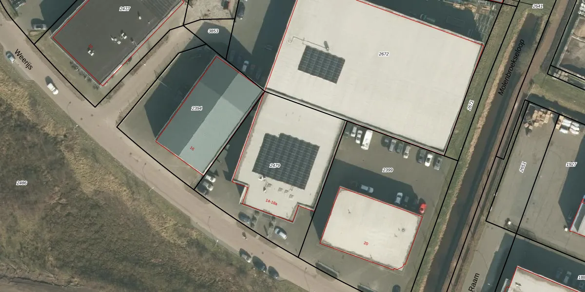 Het perceel waarop Weerijs 18 staat heeft een oppervlakte van 1645 m². Dit is een zeer groot perceel. De perceeloppervlakte wordt geregistreerd door het Kadaster. Gedetailleerde informatie over de maten van dit perceel kunt u vinden in het rapport Kadastrale kaart met maatvoering van Weerijs 18.