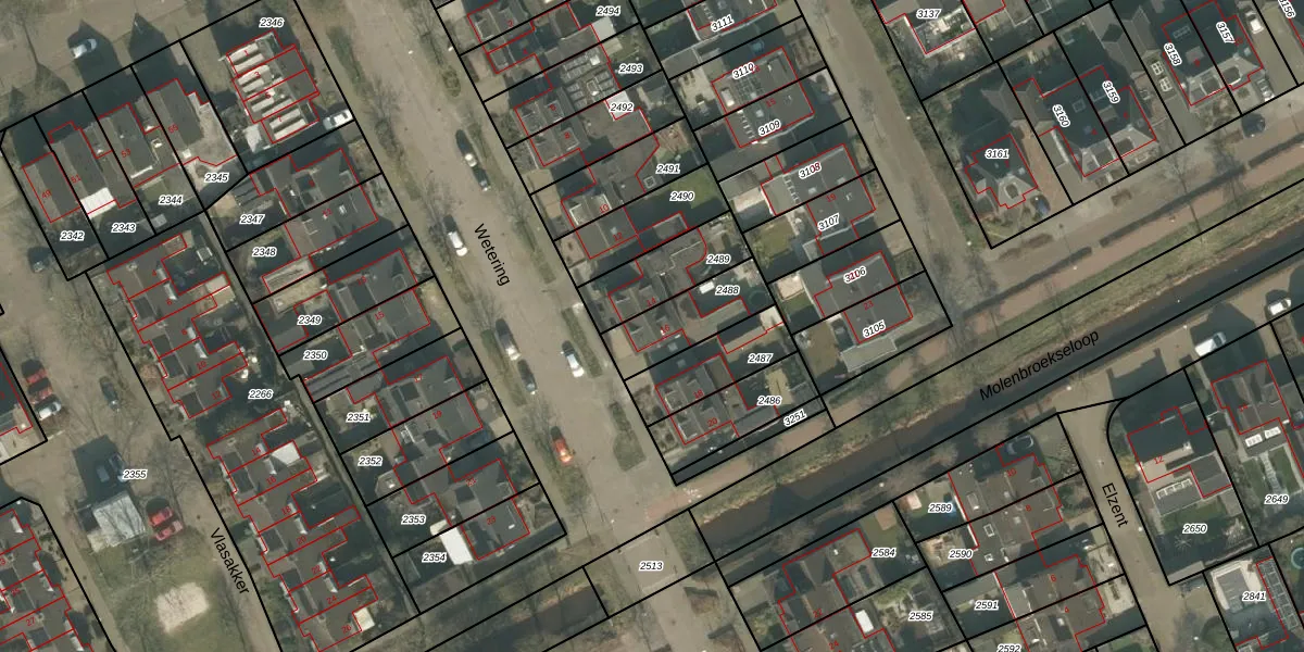 Gebruik de zoekbalk of klik op een perceel voor informatie over de adressen binnen dit perceel.