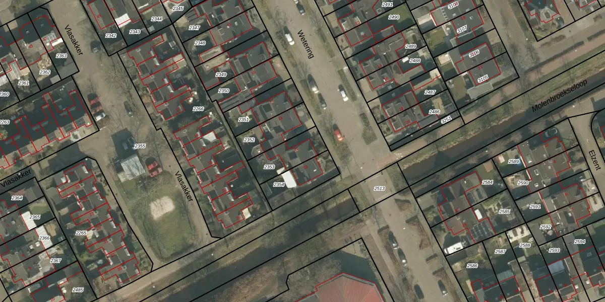 Gebruik de zoekbalk of klik op een perceel voor informatie over de adressen binnen dit perceel.